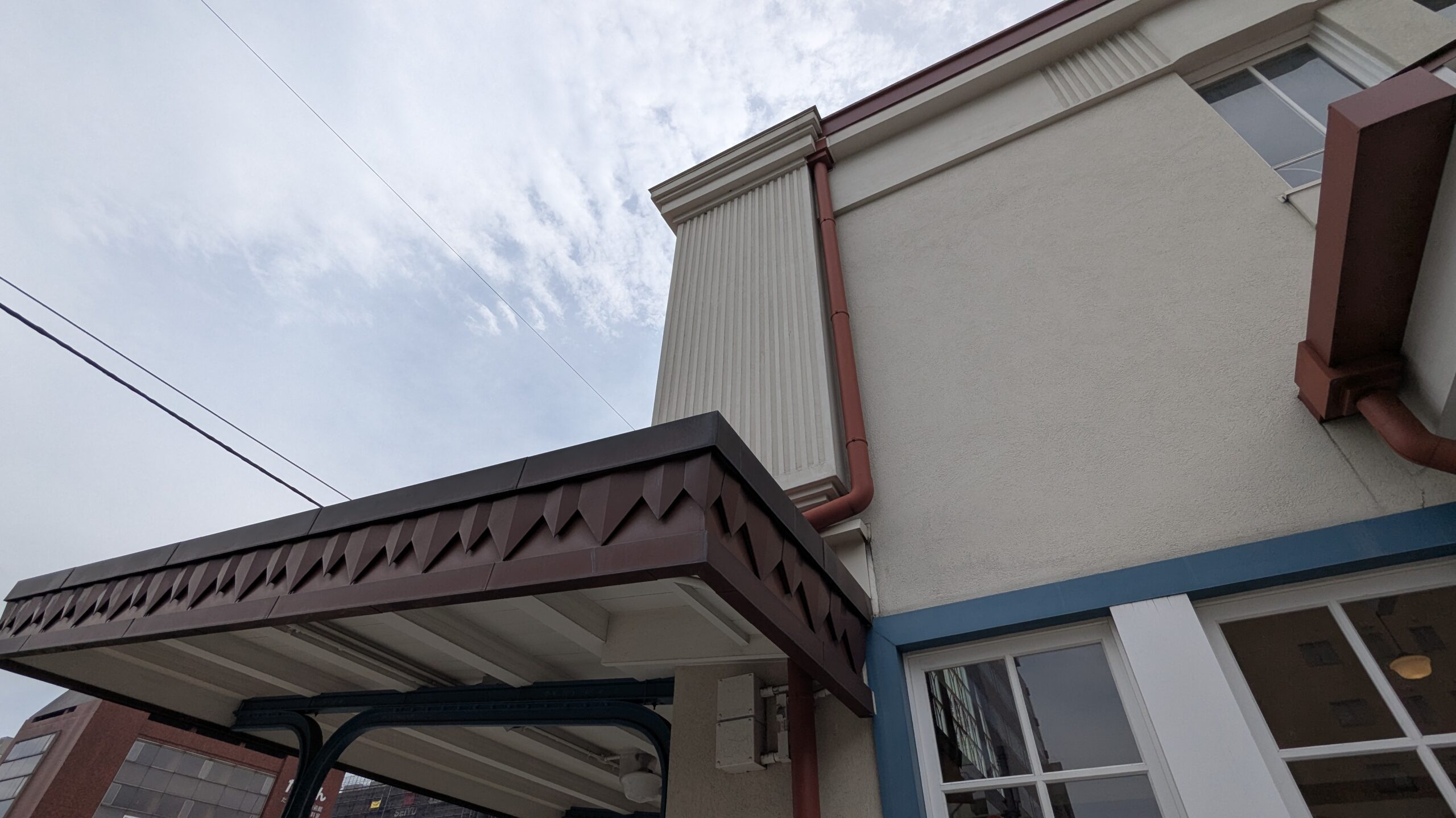 概要 新国立駅舎の竣工後、地域住民からの要望もあり旧駅舎の再築が決定<br> 屋根、雨樋にかかる部分の再建を行った